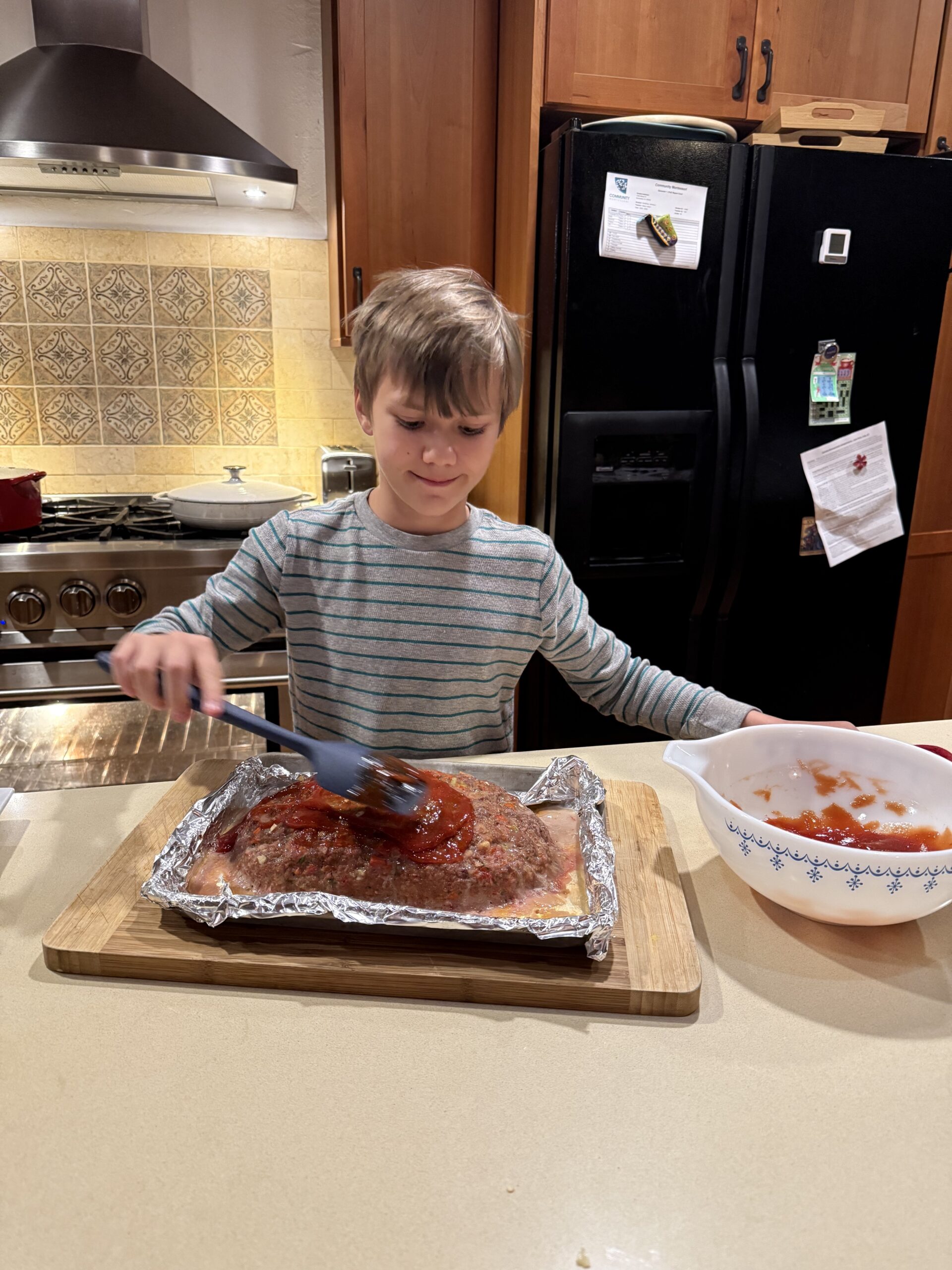 • Add the Glaze – Spread the sauce over the Meatloaf, then return to the oven and bake an additional 20 minutes or until the internal temperature is 160˚F on an instant-read thermometer. Rest the meatloaf for 10-15 minutes before serving and it will be much easier to slice.
